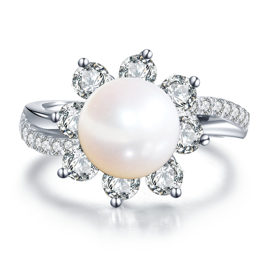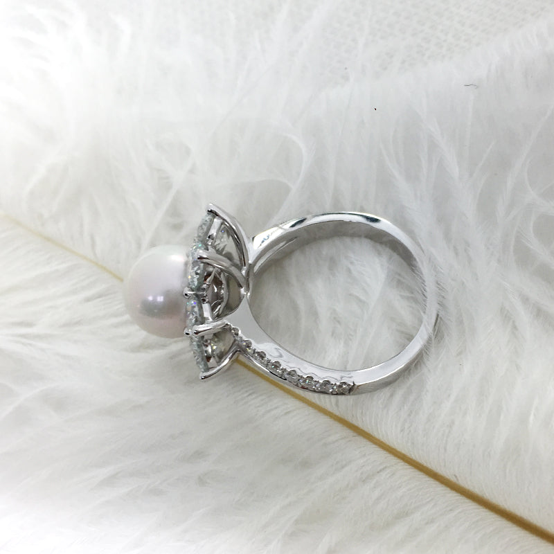 14K White Gold Wedding Pearl Ring for Women
