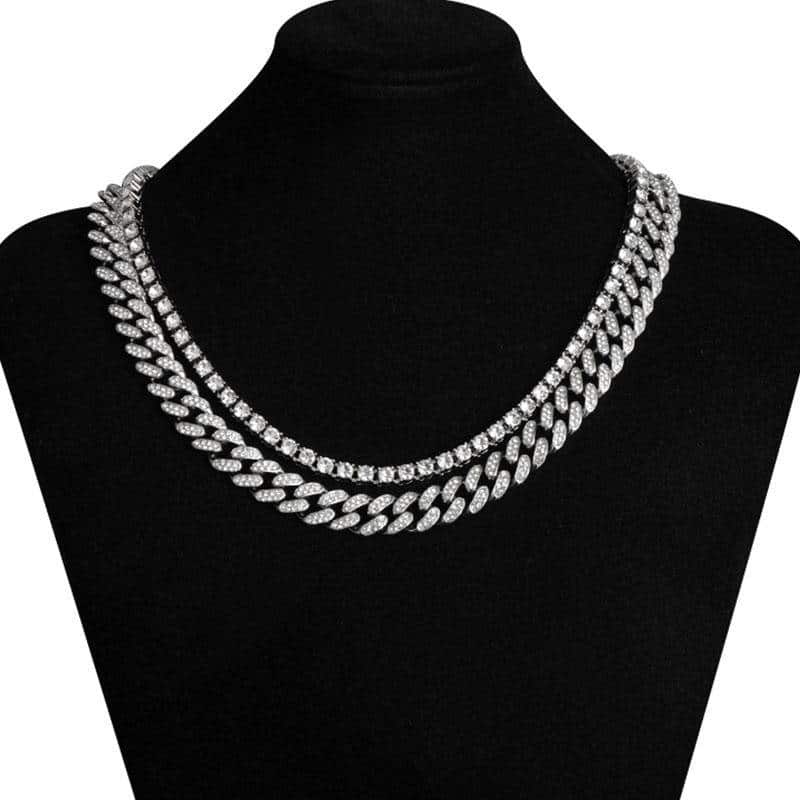 2 Layer Iced Out Chain Necklaces for Wedding