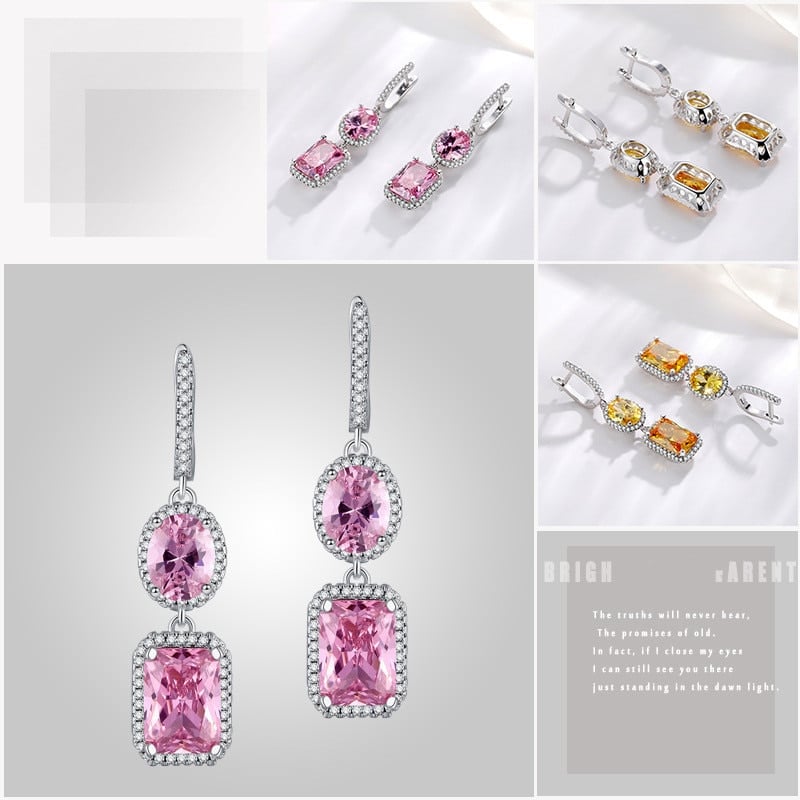 925 Silver Women's Clip Earrings in Pink and Yellow