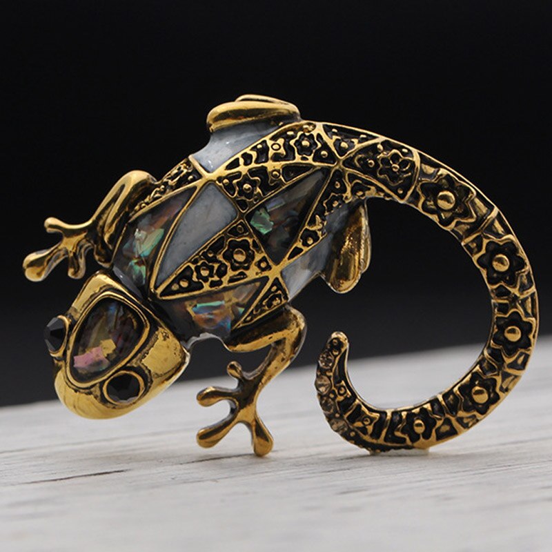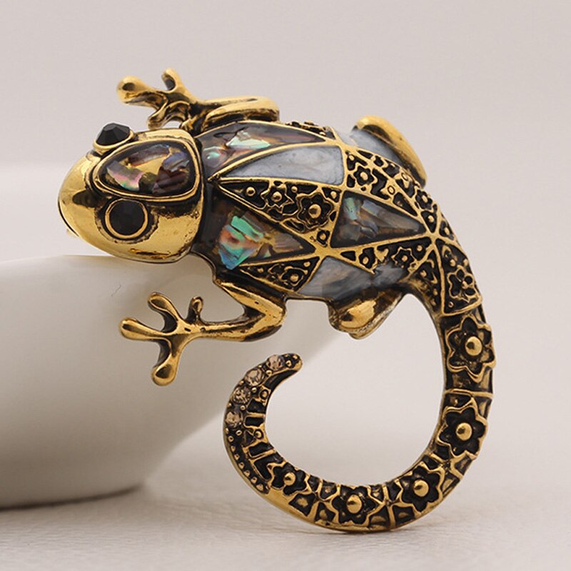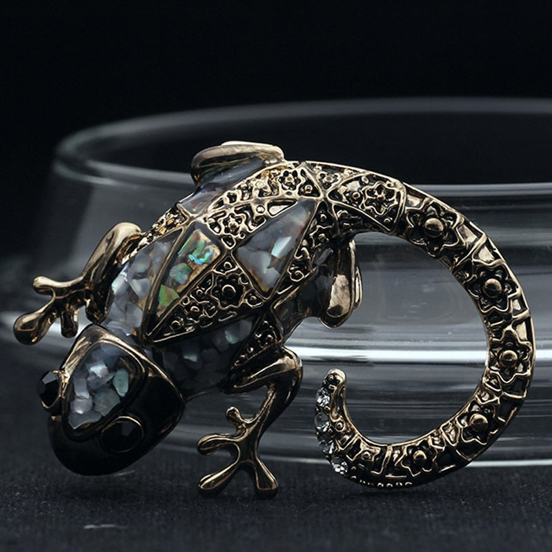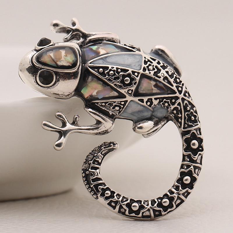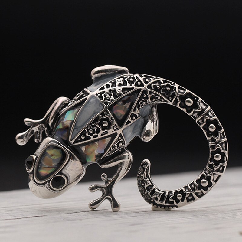 Antique Silver Vintage Brooches with Lizard Silhouette for Women and Men