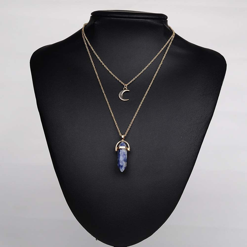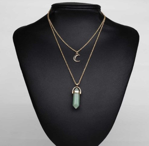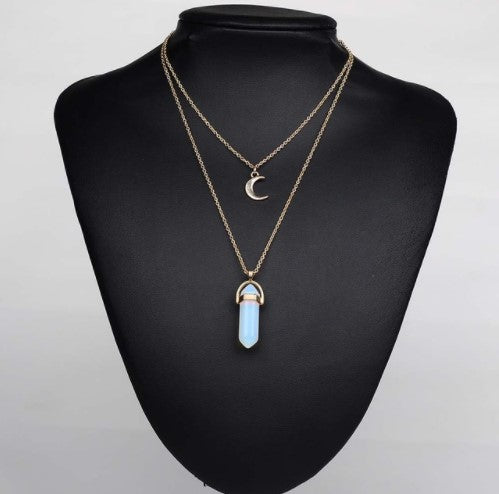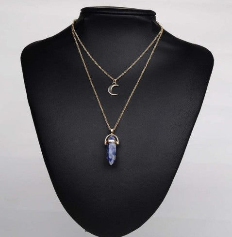 Boho Natural Stone and Moon Necklace