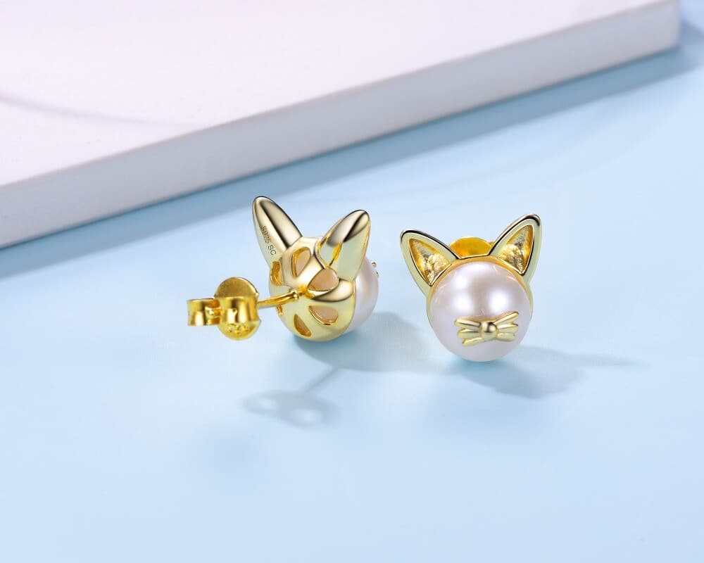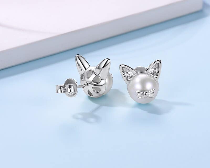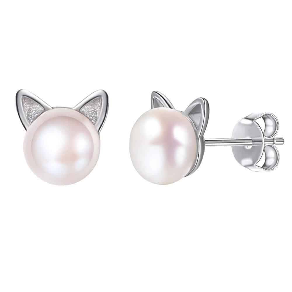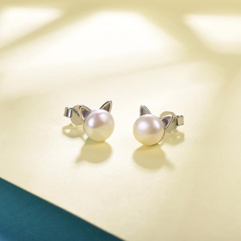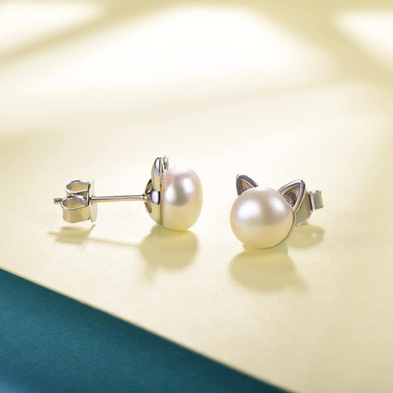 Cute Cat Design Natural Pearl Women's Stud Earrings