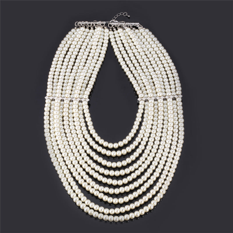 Fashion African Multilayered Simulated Pearl Statement Necklace