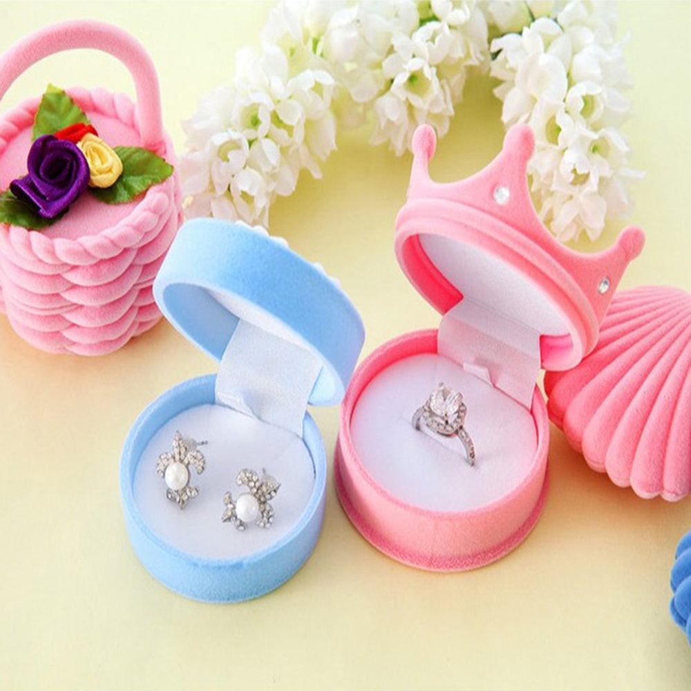 Fashion Crown Velvet Jewelry Box For Ring And Earrings