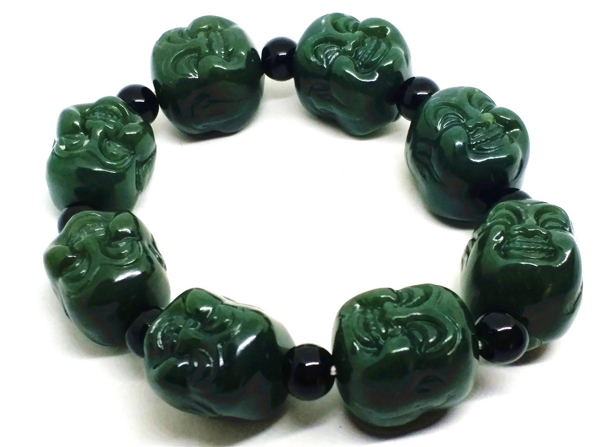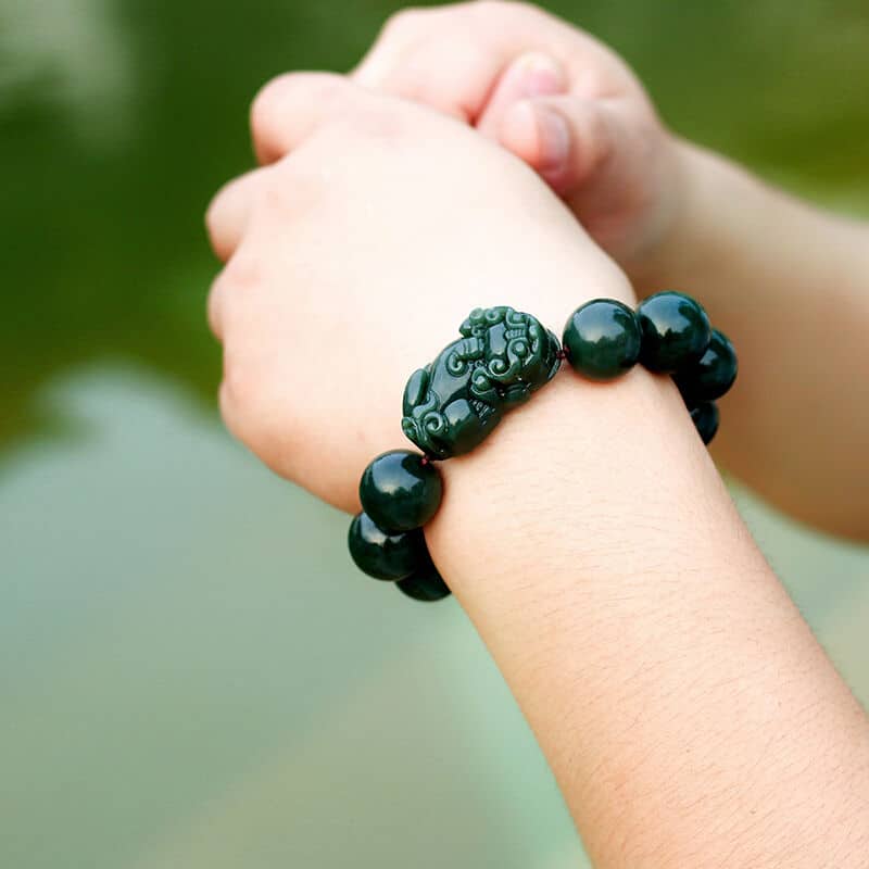 Feng Shui Style Deep Green Jade Bracelet