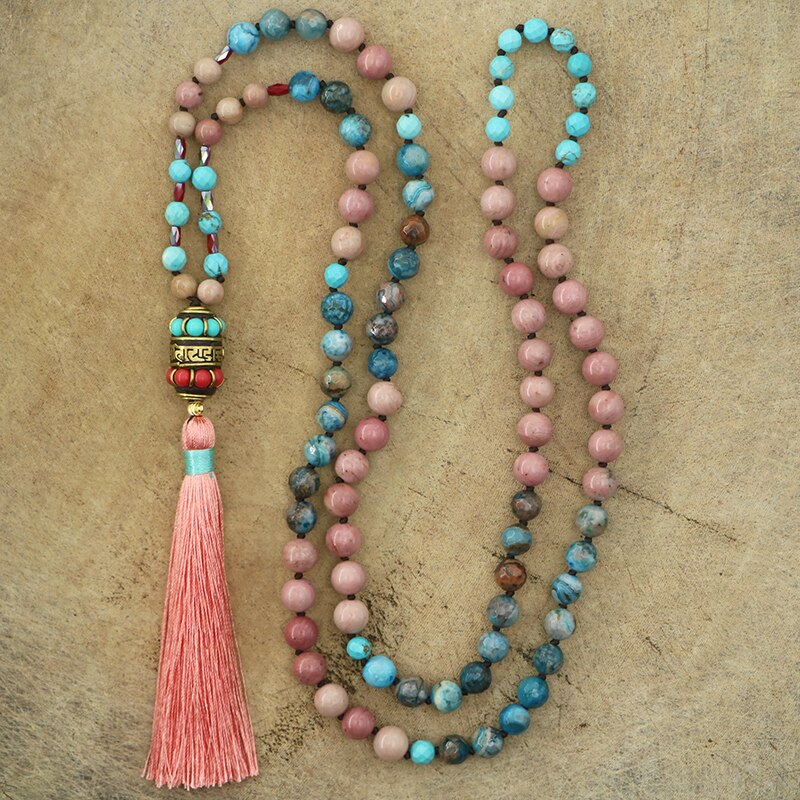 Knotted Beaded Tassel Necklace for Women