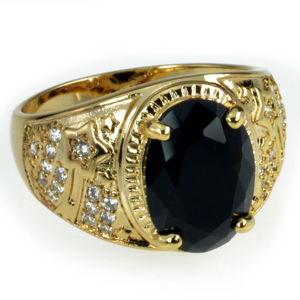 Men's Fashion Gold Ring with Black Stone