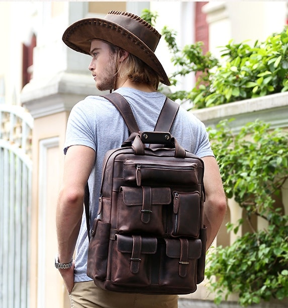 Men's Genuine Leather Travel Backpack