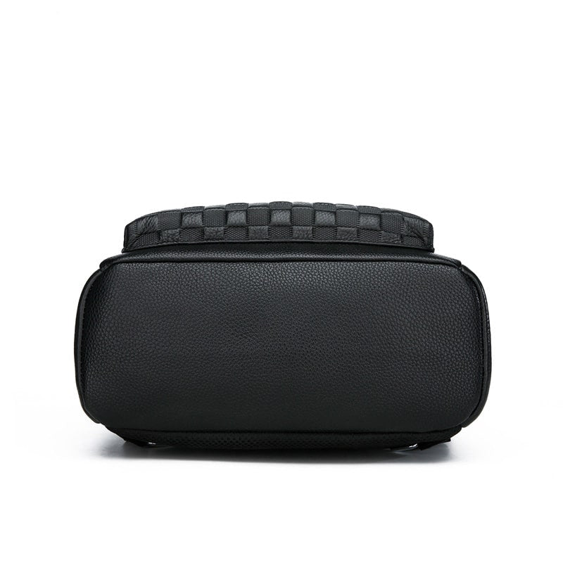 Plaid Men's Genuine Leather Backpack