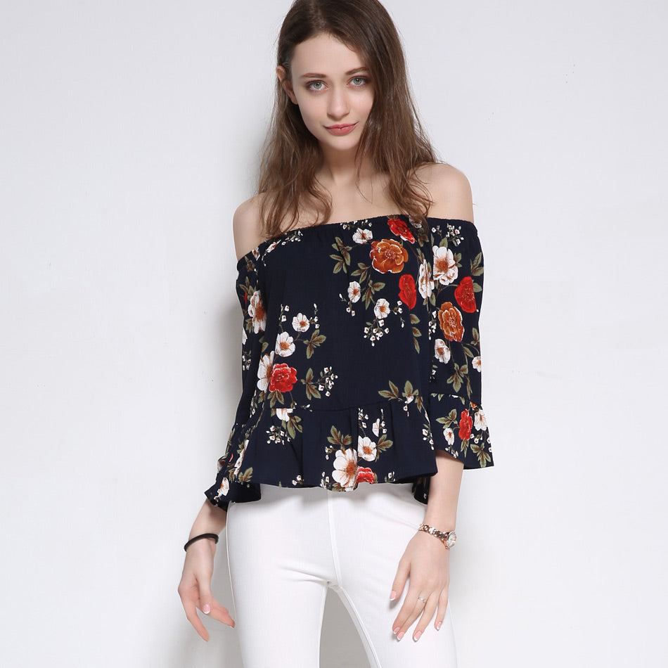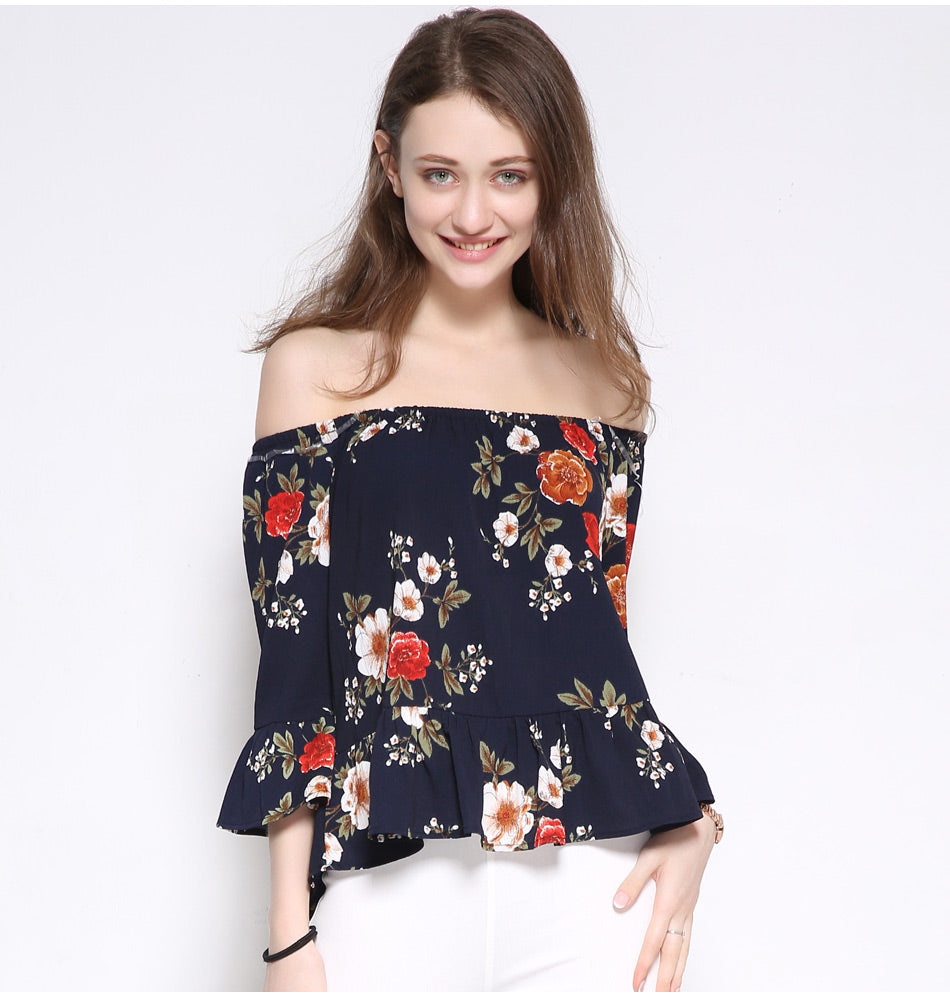 Romantic Summer Off-Shoulder Floral Women's Blouse