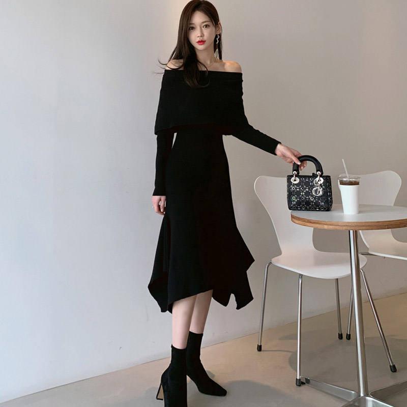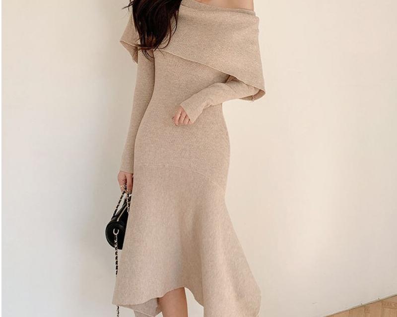 Slash Neck Knitting Dress