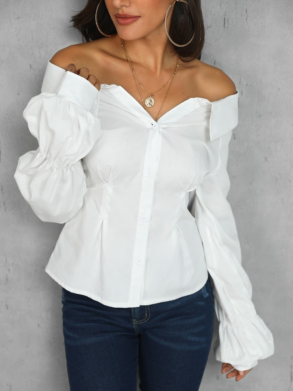 Women's Casual Blouse with Lantern Sleeve