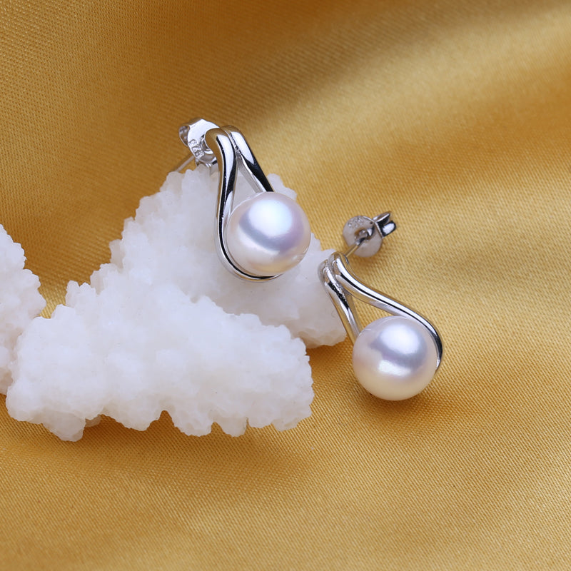 Women's Simple 925 Silver Pearls Necklace and Earrings Jewelry 3 pcs Set