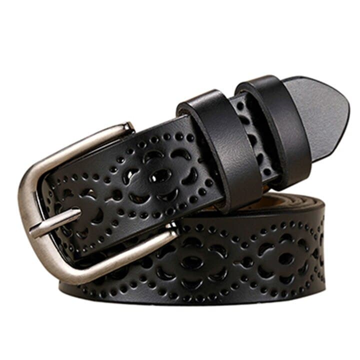 Women's Wide Carved Genuine Leather Belt